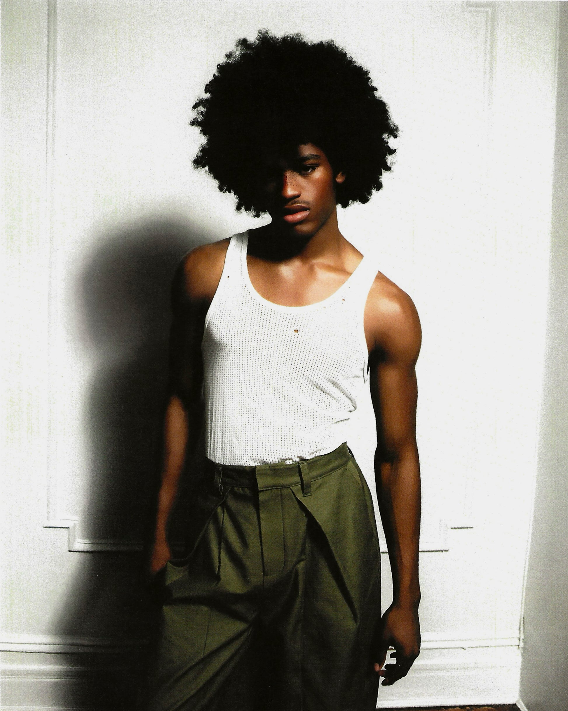Trousers with an overlapping pleat (in an origami style) offering a slightly more tailored fit & construction style than the classic uniform denims. 2 welt pockets on the back with a flap and closure button.